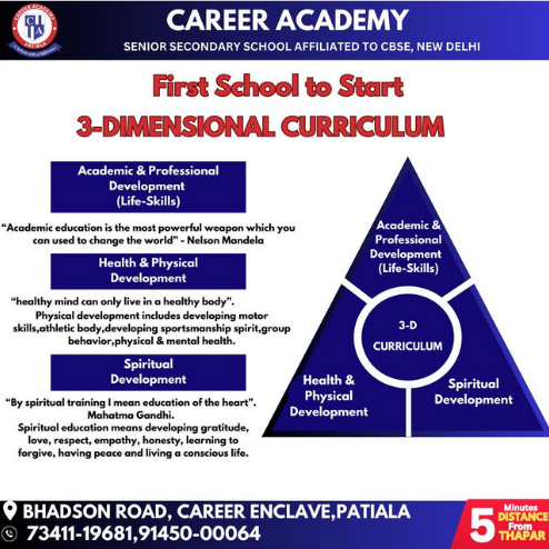 Career Academy offers high quality, well researched, broad and balanced curriculum aligned with CBSE and Ontario curriculum to achieve academic excellence which is our hallmark feature. The school invests significantly in training and developing our teaching staff to equip them with latest approaches, IT skills, and Professional Development opportunities to adopt innovative methods for achieving academic excellence.